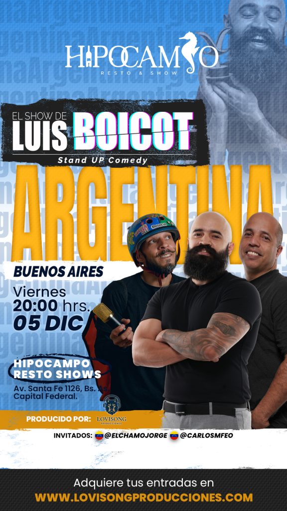 ¡DEJÁ EL RATÓN QUIETO, MARICO! No estás comprando una entrada, estás asegurando el mejor desmadre binacional de comedia del año. ¡EL SHOW DE LUIS BOICOT! LOS PROTAGONISTAS, ADEMÁS DEL PROPIO LUIS BOICOT Y CARLOS FEO: El humor «argento» picante que te da en el centro. ¡Pura trayectoria y cero caretas! EL CHAMO JORGE (El Delivery Loco): La visión «chama» desopilante que te enseña a reírte hasta de la crisis. TU DECISIÓN (¡Es fácil!):